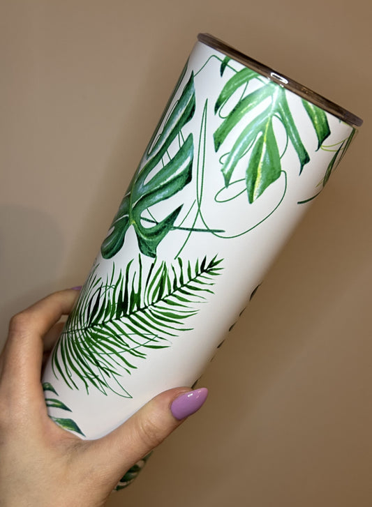 Our double walled 20 ounce tumblers are designed to keep your drinks cold for 24 hours and hot for 6 hours. Comes with a travel cup lid and aluminium straw.