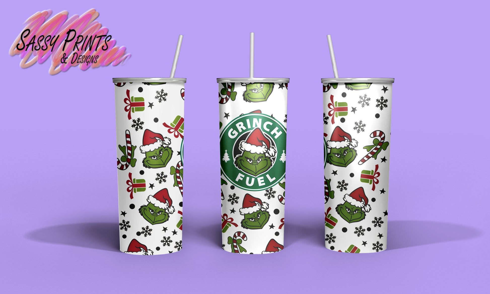 20oz tumbler with grinch designs. Bottles are 20oz in size and double walled. They will keep your drinks cold for up to 12 hours and hot for 6 hours. The contents may be hot but the mug is cold to the touch.