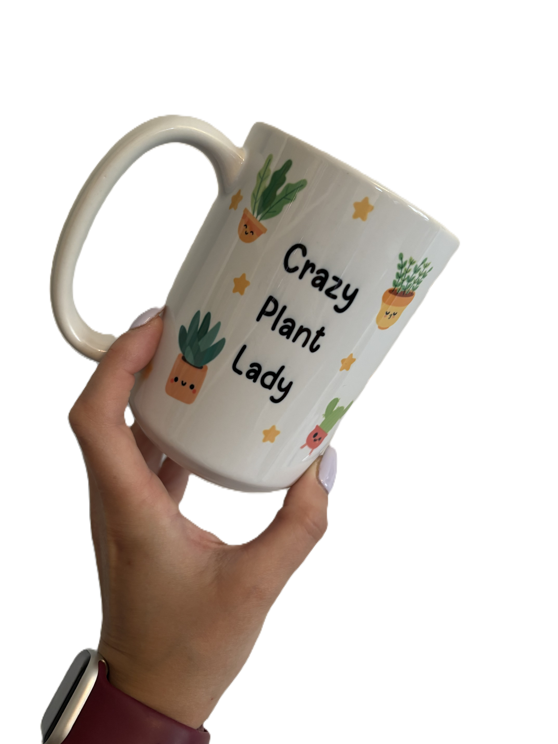 Sip your morning coffee or evening tea in style with this fun and relatable "Crazy Plant Lady" mug. Crafted from durable ceramic, it features a witty design that's perfect for anyone who's a proud plant parent. The high-quality print is fade-resistant, and the sturdy handle provides a comfortable grip. It's the ideal gift for the green thumb in your life (or a treat for yourself!) and is both microwave and dishwasher safe for easy care.
