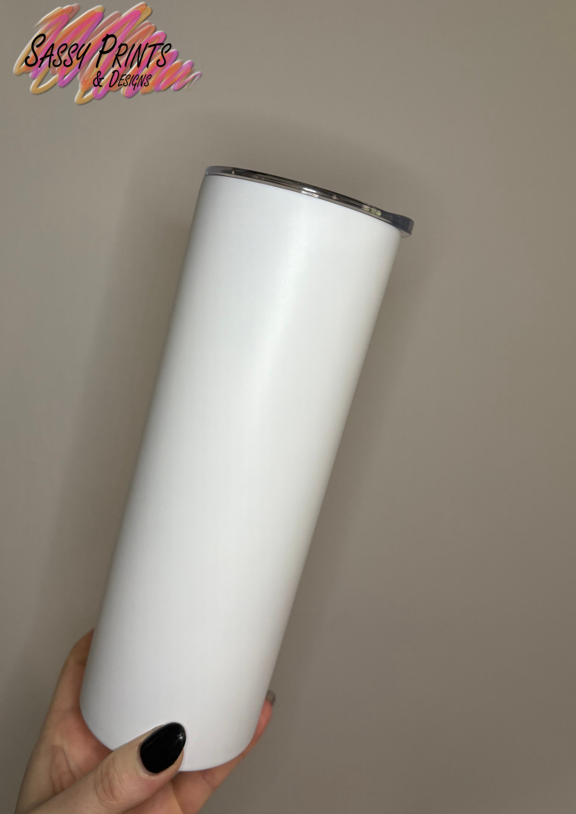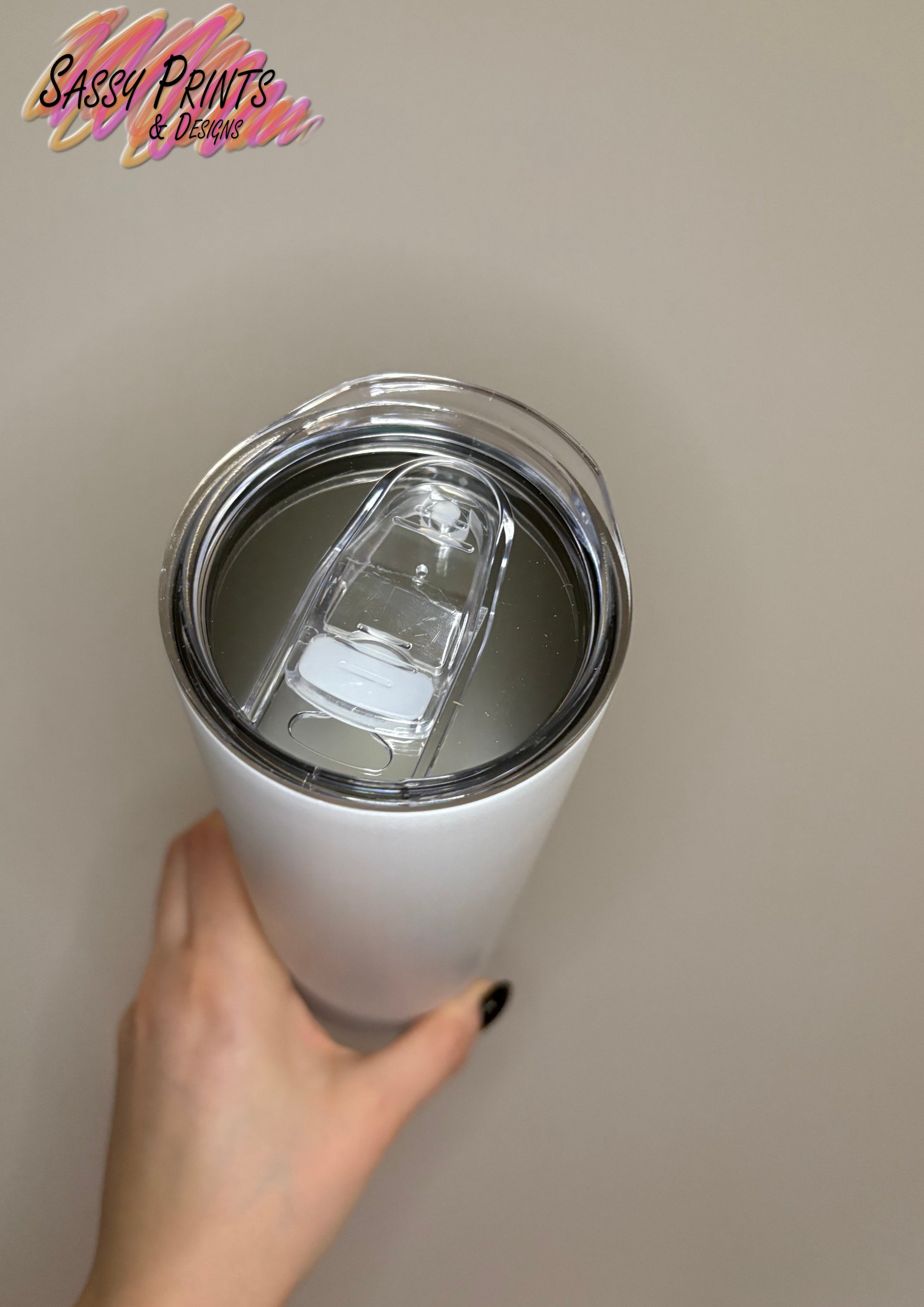 Unleash your unique style and stay hydrated on the go with our fully customizable 20oz tumbler. Designed for peak performance, this bottle is your perfect companion for the school run, office everyday adventures. Choose your favorite colour, add your name, a motivational quote, team logo or even family photos. Simply place your order and send a email to info.sassyprints@gmail.com with what you would like on your tumbler.