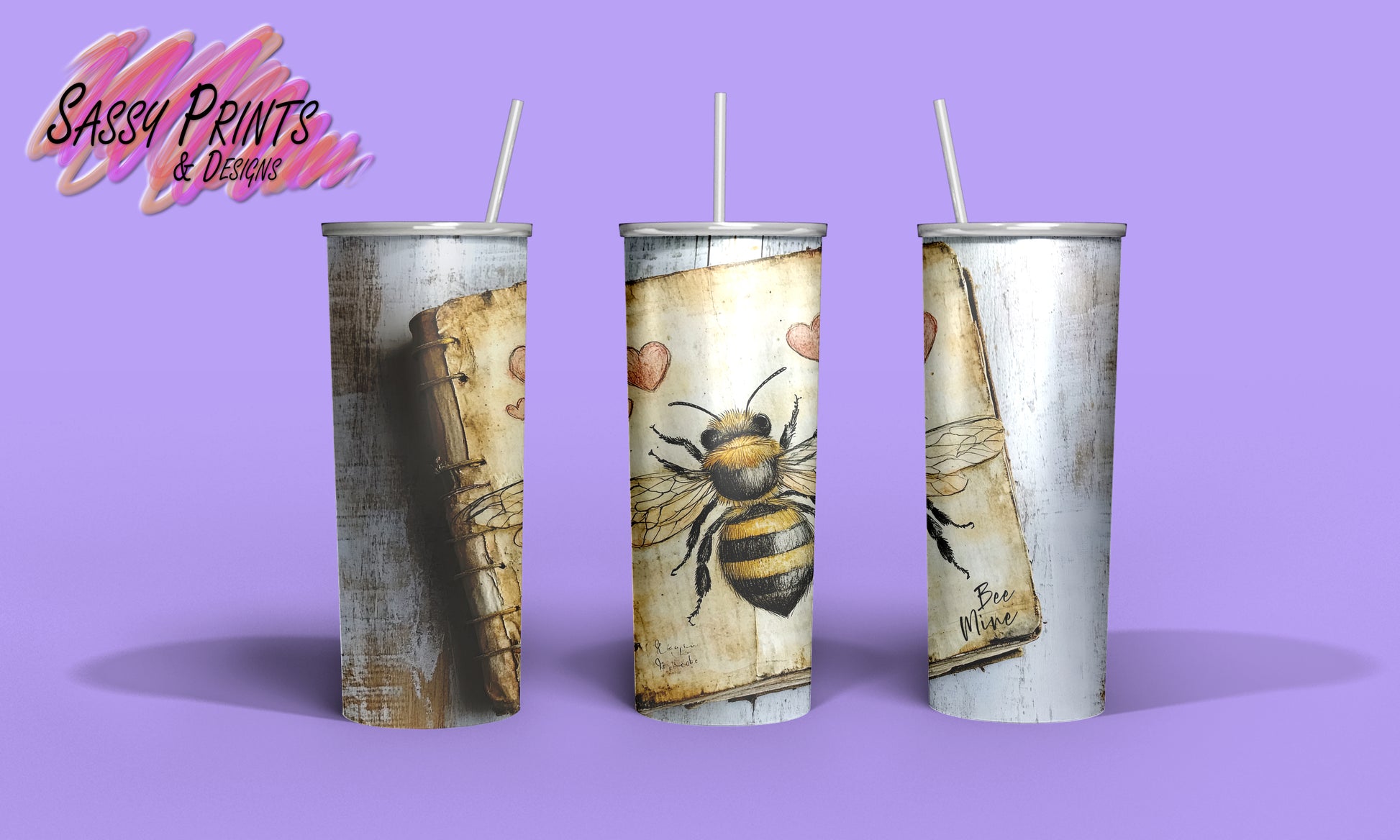 "Bee mine" bumble bee design. Our tumblers are perfect for when you are on the go, they keep your drinks hot for up to 6 hours and cold for 24. Each tumbler comes with a straw. This design is perfect for bumble bee lovers and would make a lovely gift.