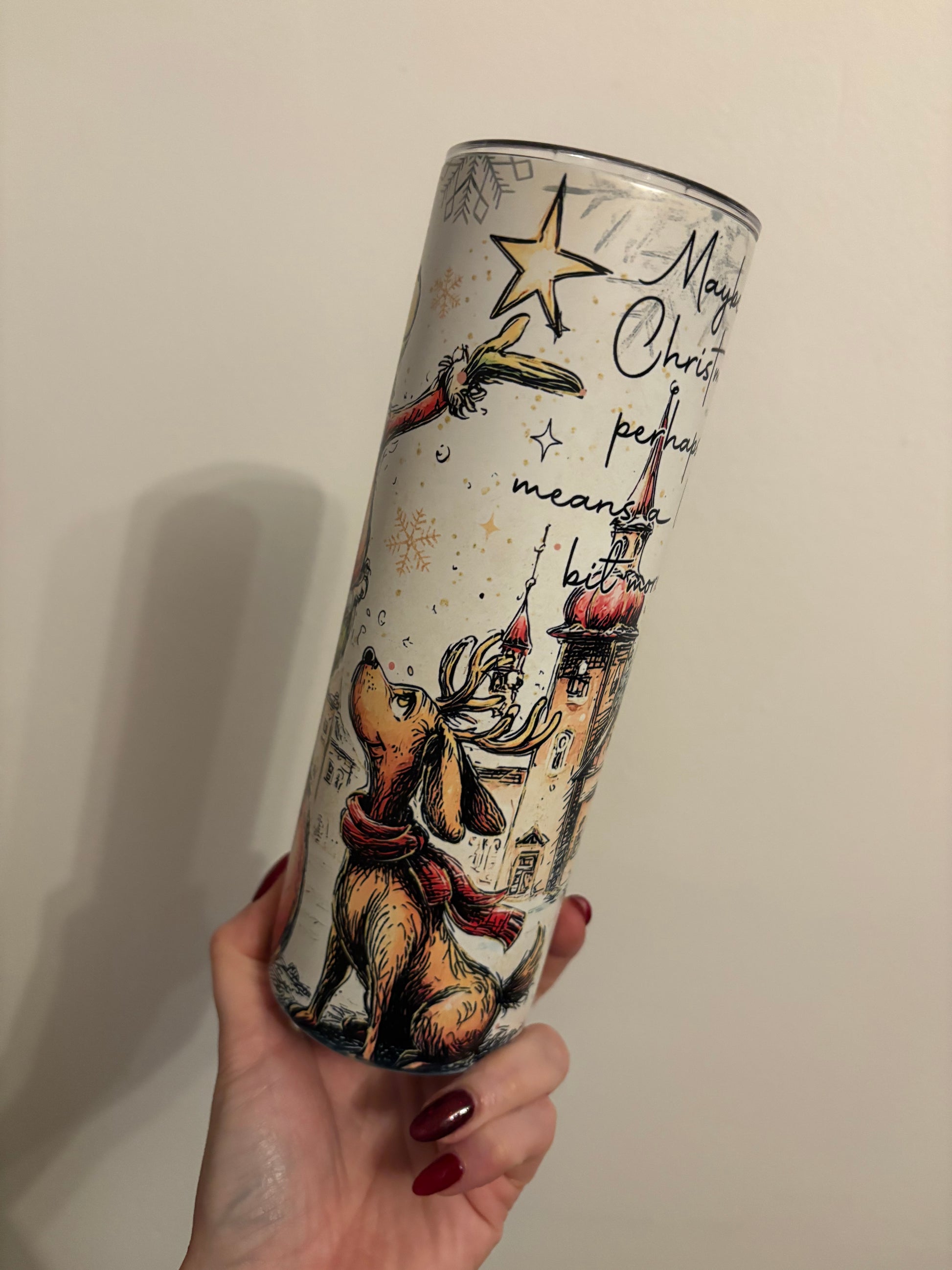 20oz tumbler with the gorgeous grinch design 💚