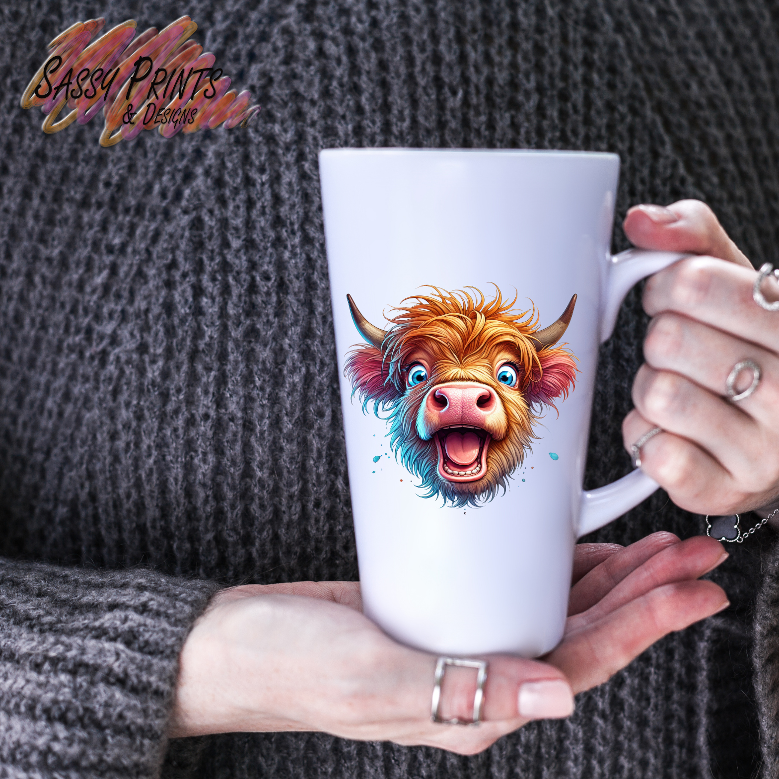 Brighten your morning with this charming 17oz latte mug featuring a cheerful laughing highland cow design. Perfect for your daily coffee, tea, or hot chocolate, this ceramic mug combines generous capacity with playful artwork that brings a smile to your face. Ideal for gifting or treating yourself to a bit of everyday joy.