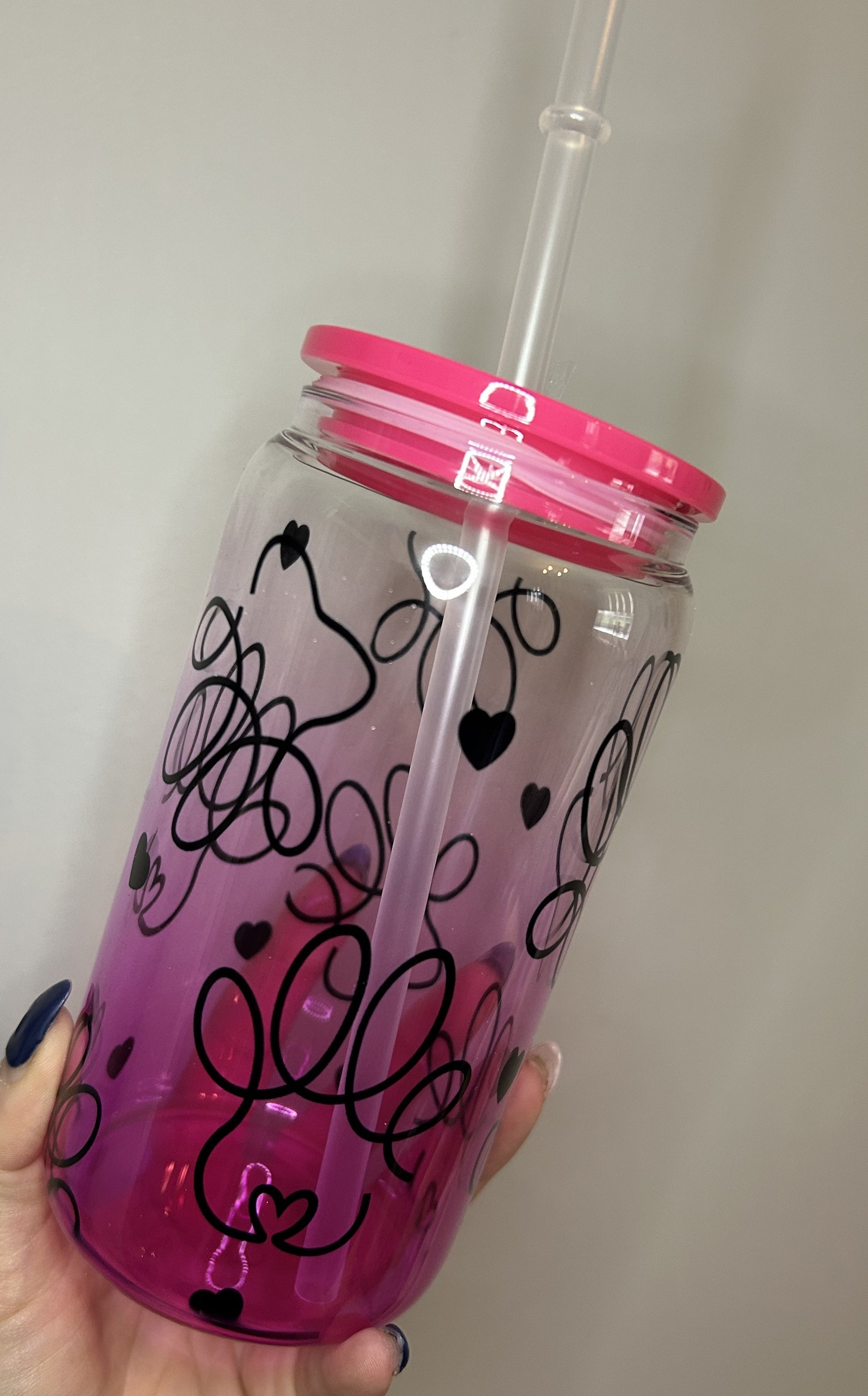 Stunning pink ombre libby cup with a "Puppy Love" design.