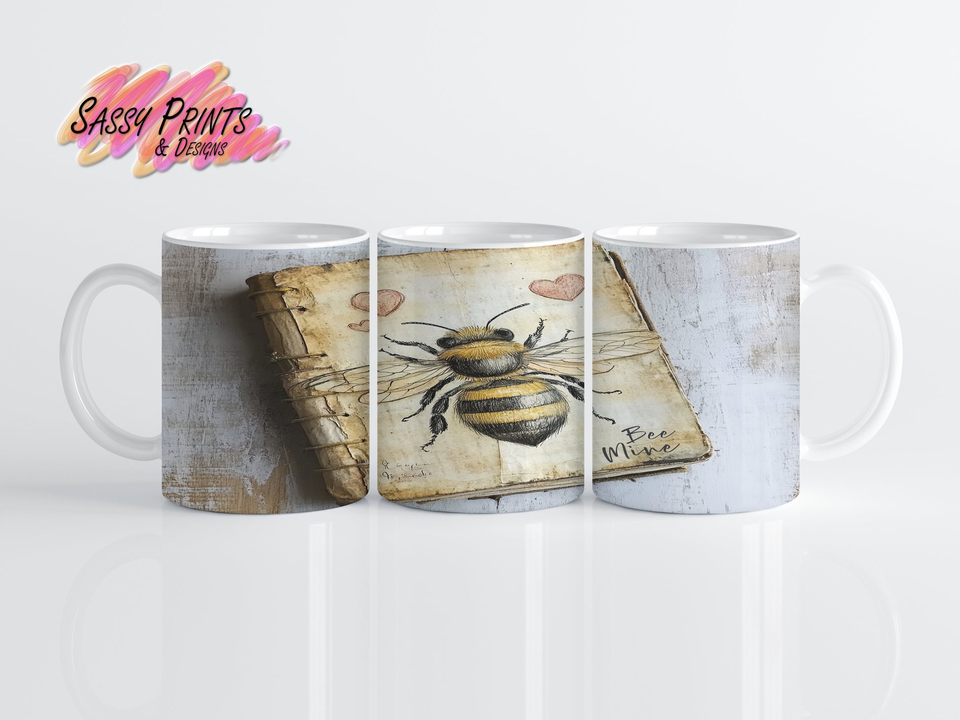 Bumble bee design with vintage background. Available in both 11oz and 15oz mugs.