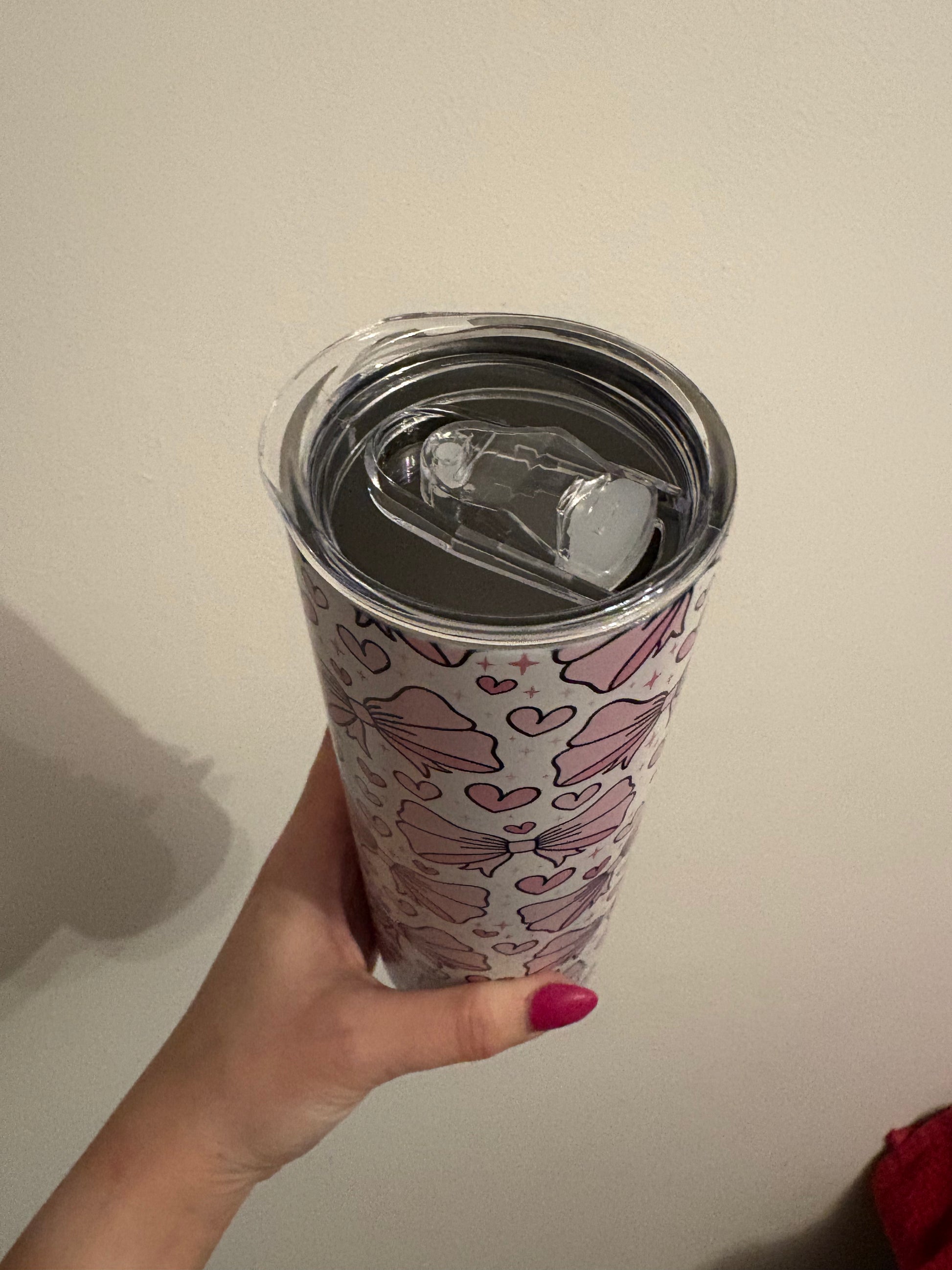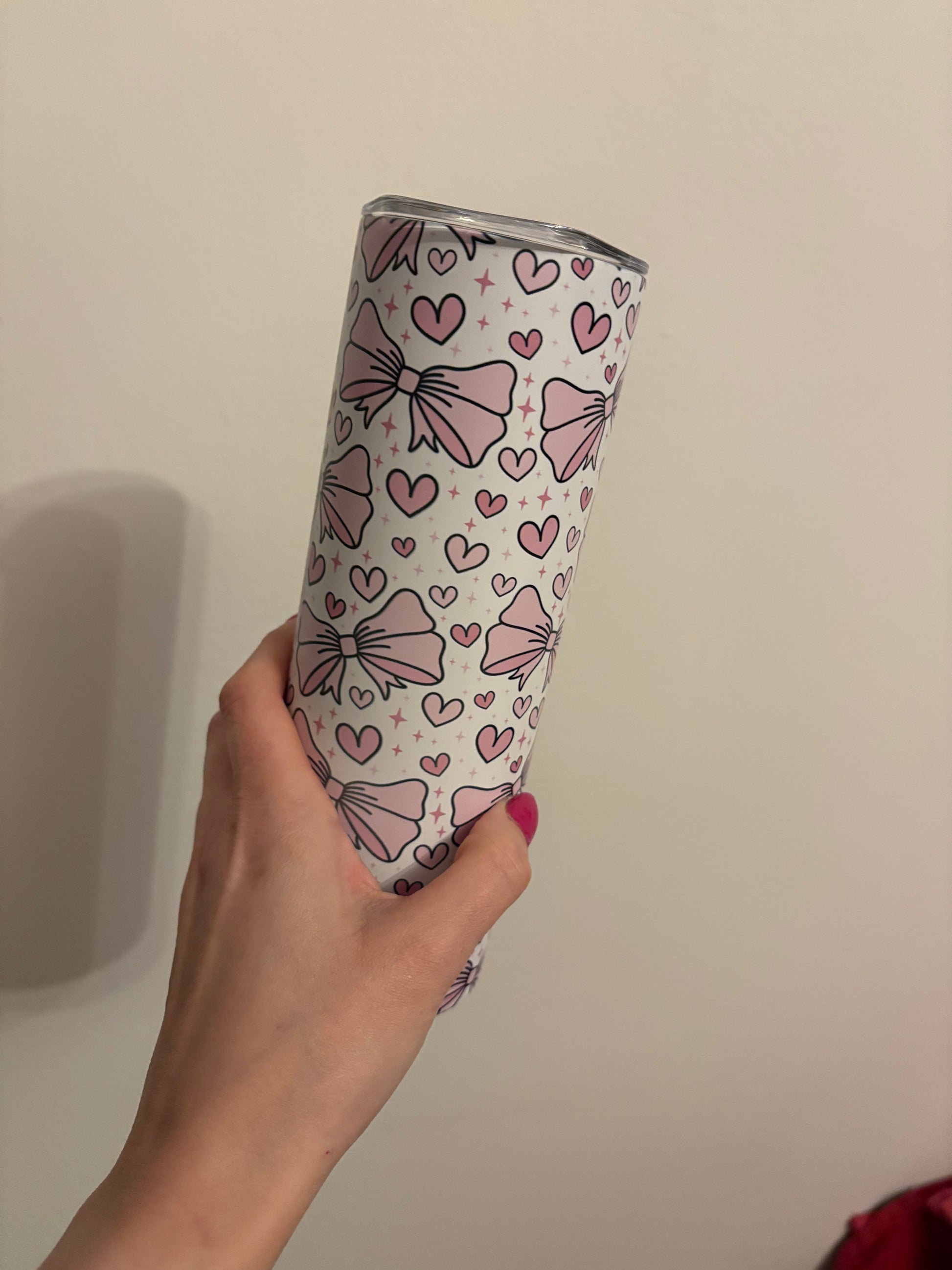 * Adorable Design: This tumbler features a pretty pink bow and an adorable heart design, making it perfect for everyday use. 🎀