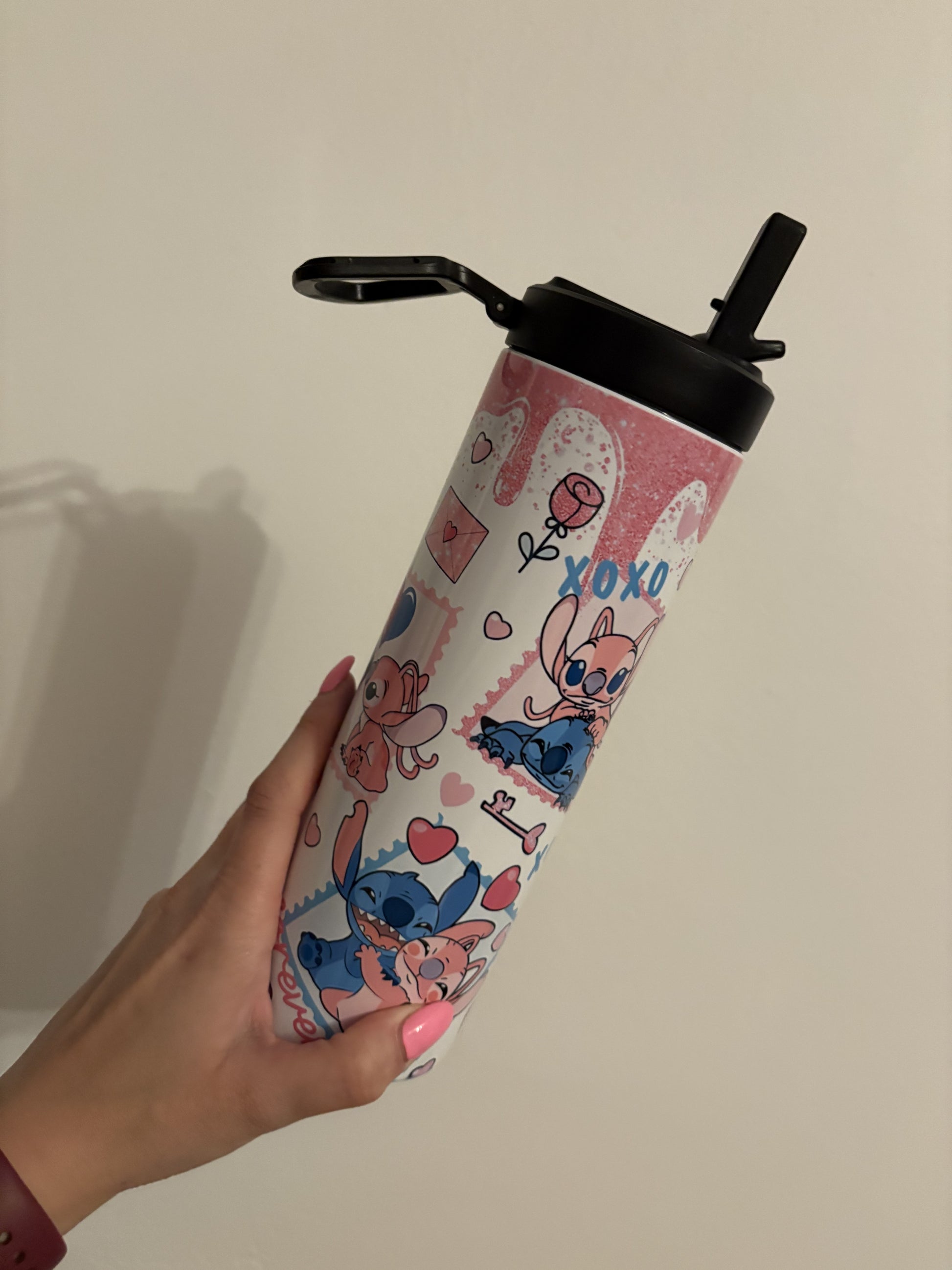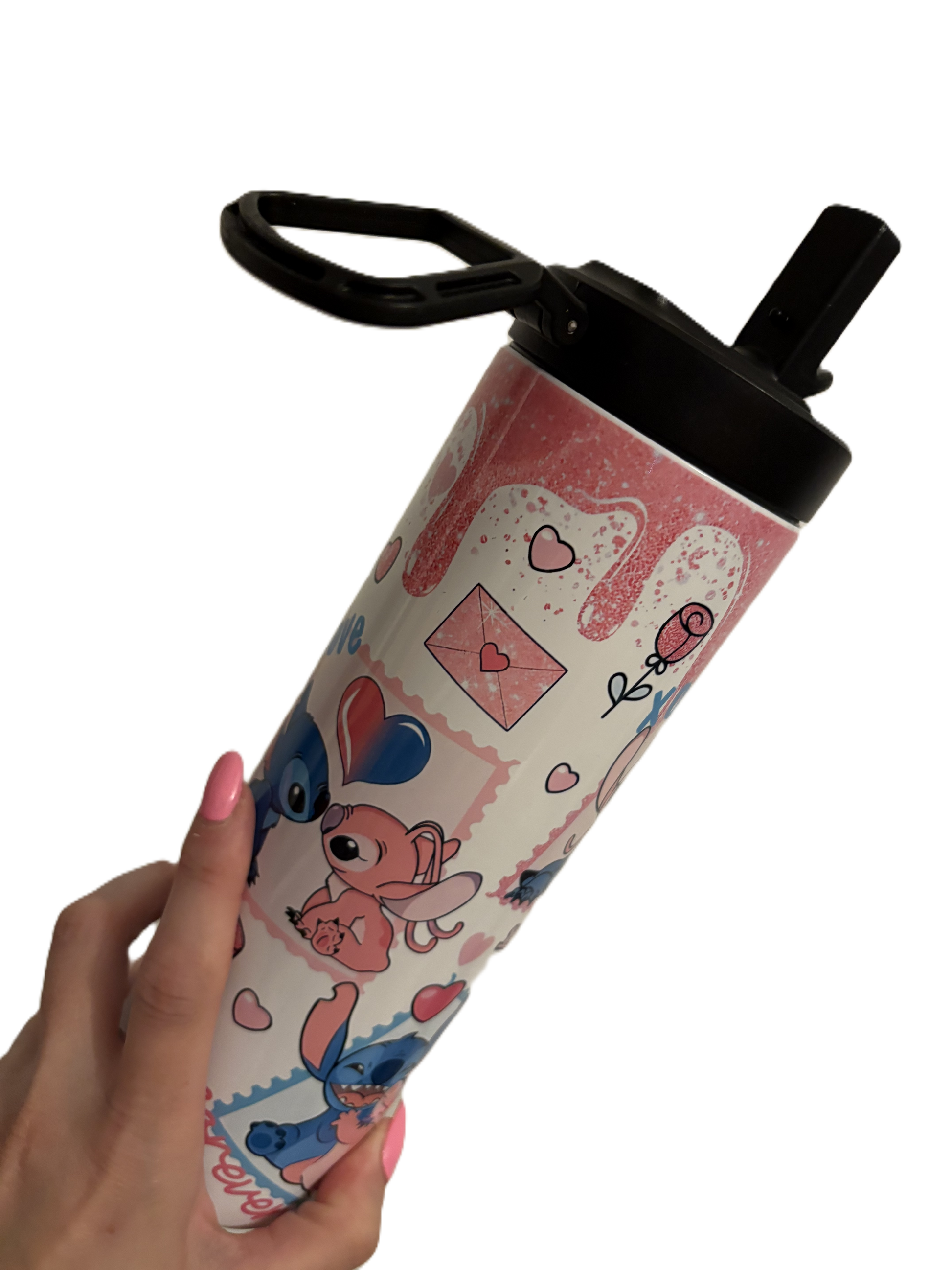 20oz tumbler with cute pink and blue details. Our sports bottle are double walled so keep yur drinks cold for up to 12 hours. Great for when your on the go!