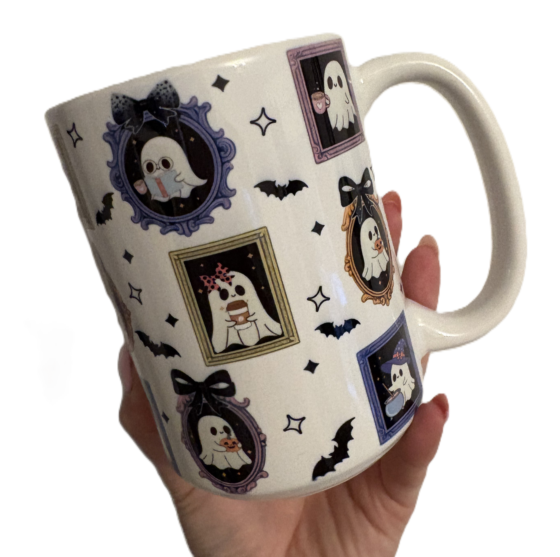 This bold and edgy 15oz mug brings the striking "Ghost Gallery" aesthetic to your daily routine. Crafted from high-quality ceramic, this mug features a dynamic and rebellious design inspired by modern street art and contemporary portraiture. The high-quality, full-wrap print captures the vibrant, mixed-media style of the "Ghost Gallery," with a bold, urban-inspired design that makes a statement. Perfect for those who appreciate art with an anti-establishment edge, this generously sized mug is a unique way to enjoy your favorite beverages. It's both microwave and dishwasher safe, combining an artistic feel with everyday convenience.