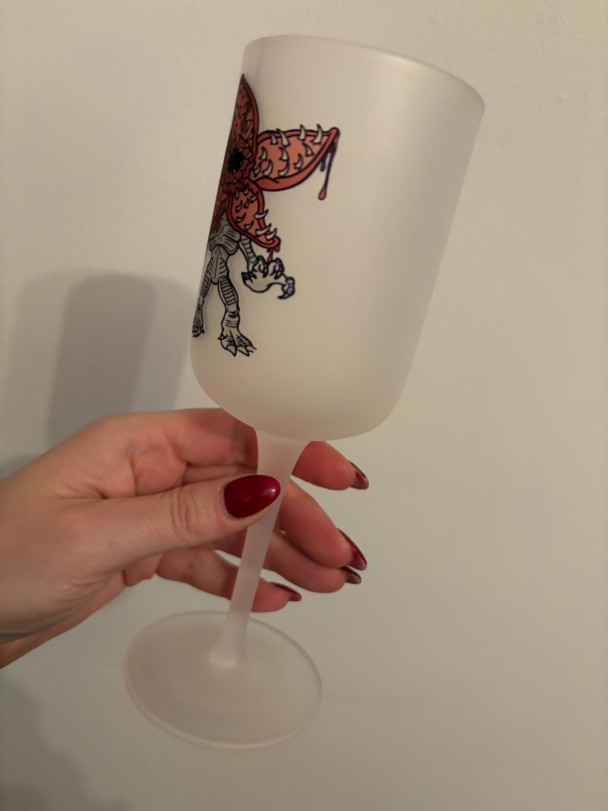 Raise a toast to good times with this generously sized wine glass, with Demogorgon design . Perfect for those evenings when one glass is all you need... or perhaps a few! A fun and functional addition to any wine lover's collection, ensuring your sips are always in good spirits.